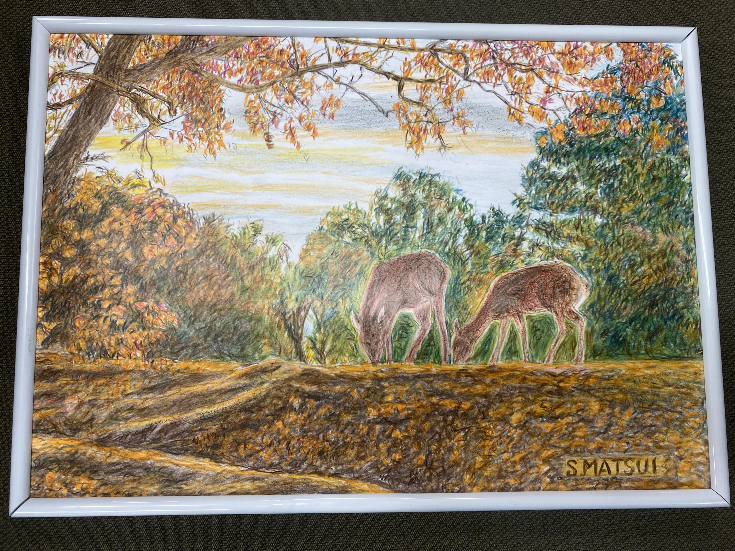 この絵の情景は、人里離れた奥深い山で地面に積もる紅葉を踏み分けて鳴いている鹿の声を聞くときが、秋の寂しさをいっそう悲しく感じる時と詠まれている情景です。